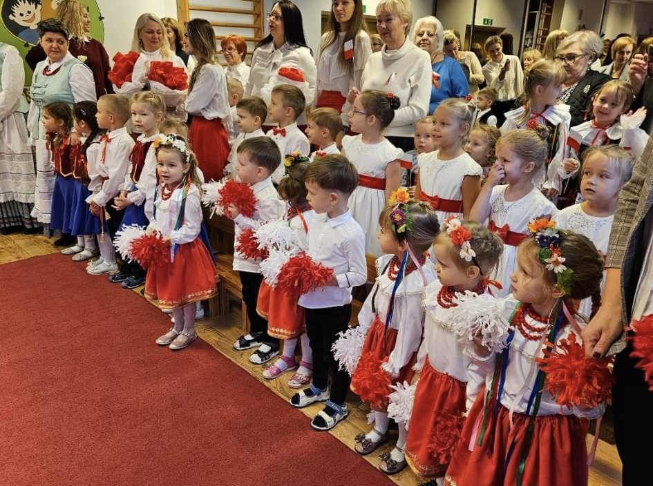 Pod opieką nauczycielek Jolanty Janukiewicz, Anny Juchniewicz, Aurelii Petrukiewicz oraz nauczycielki edukacji artystycznej Danuty Biekszenie nasze dzieci stanęły na scenie, by celebrować tożsamość narodową w pięknym stylu.