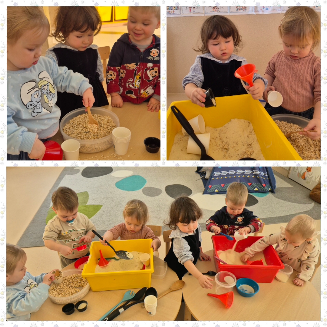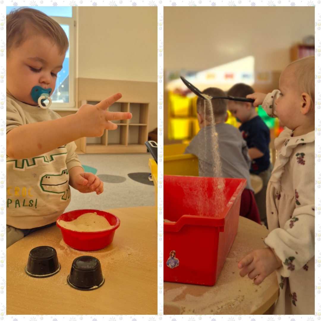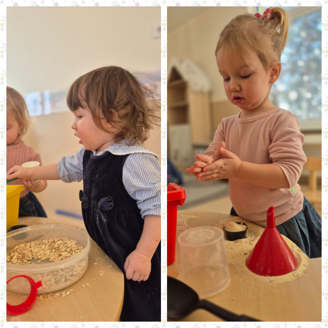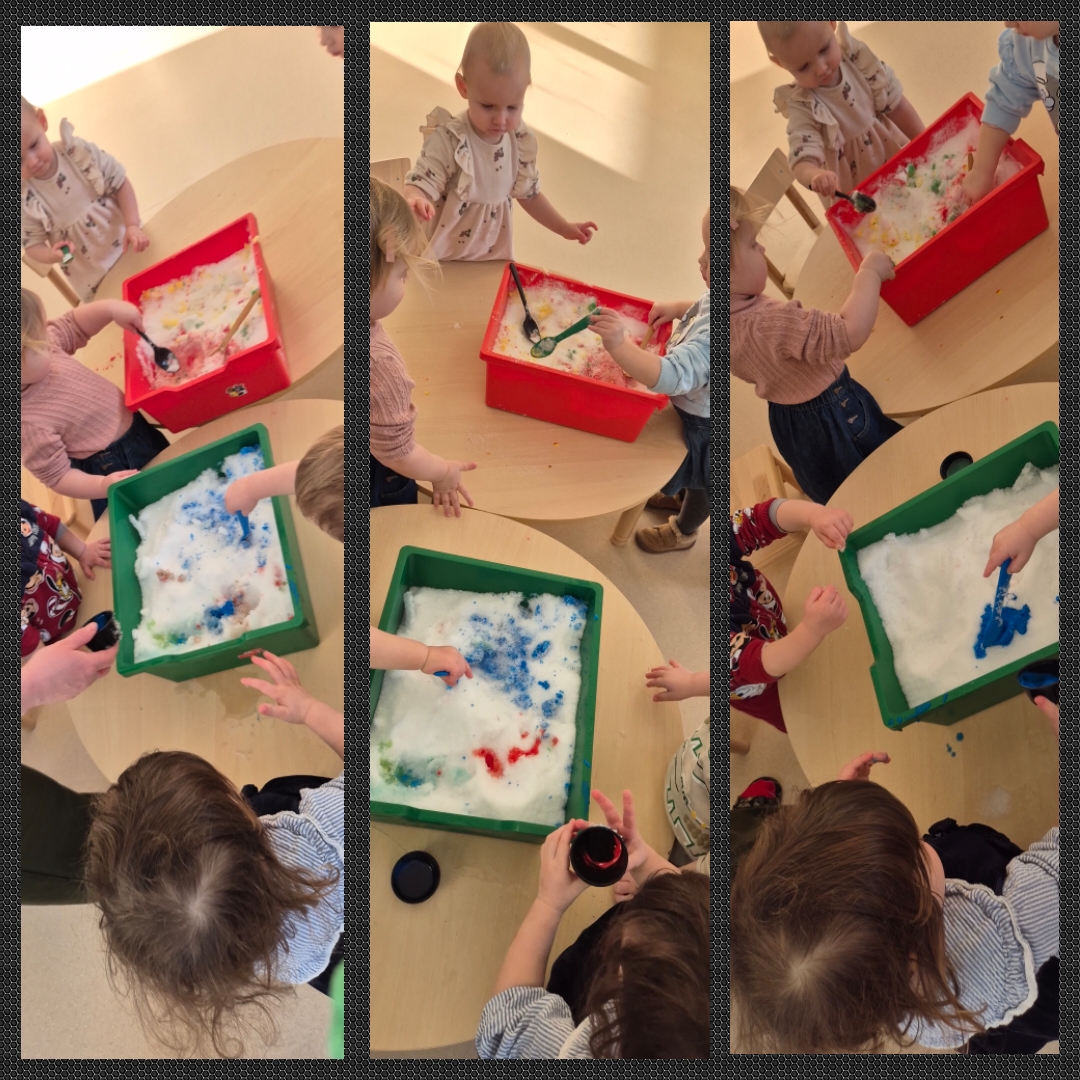 Visą dieną ugdytiniai eksperimentavo su sniegu ir guašu, dalyvavo sensorinėse veiklose su kruopomis, jas bėrė, pylė, matavo, slėpė daiktus jose ir jų ieškojo, piešė, klausėsi byrančių kruopų „lietaus“, naudojo įvairius plastikinius įrankius. Visiems kartu buvo smagu pabūti ,,Draugystės namelyje“ ir pasimokyti bendrystės bei dalijimosi įgūdžių.