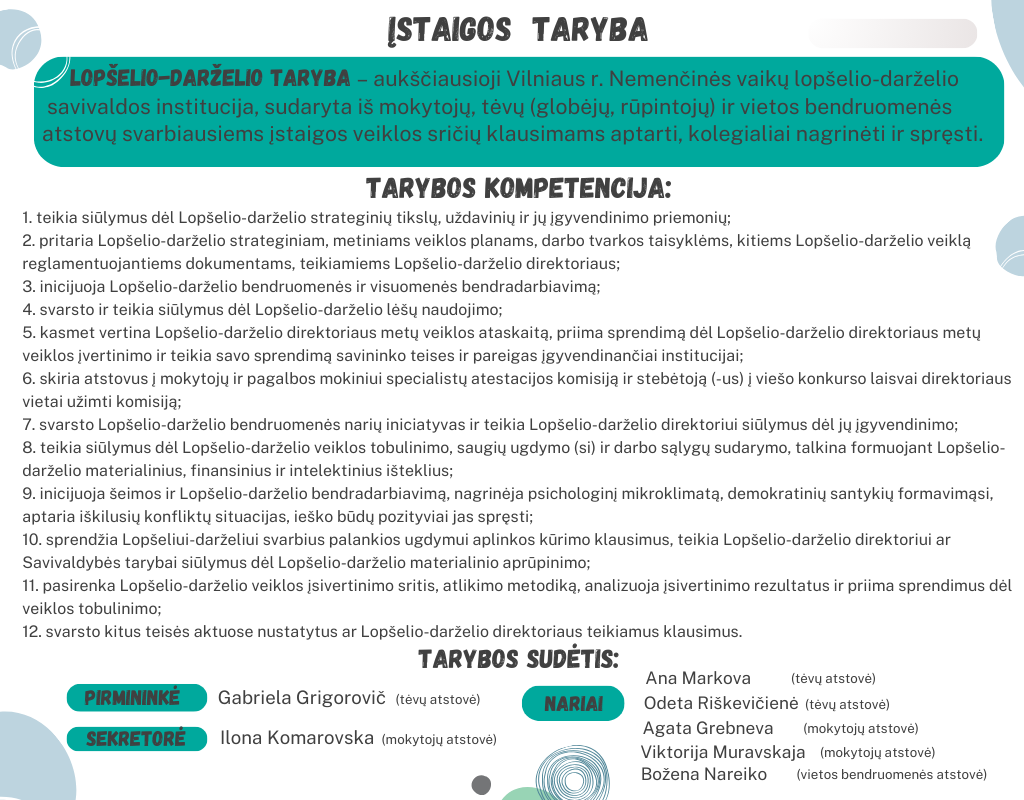 ValdymasĮstaigos tarybaMetodinė grupėVaiko gerovės komisija